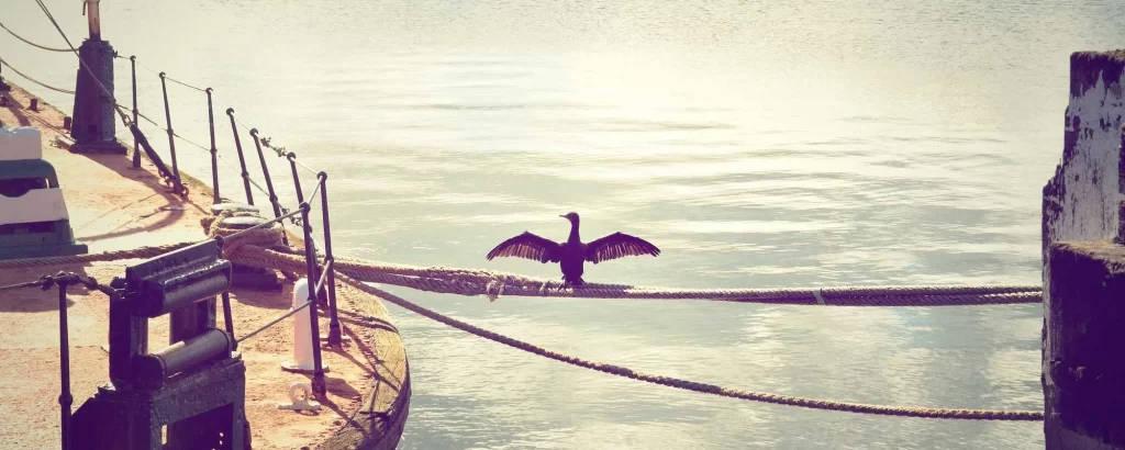In the heart of Harbor Haven, where maritime tales are etched into the daily rhythm, the lone bird on the rope between boat and pier stands as a timeless witness to the ebb and flow of existence. In its solitary grace, it invites observers to appreciate the delicate dance between isolation and connection, encouraging us to find solace and inspiration in the quiet moments that unfold between sea and sky.